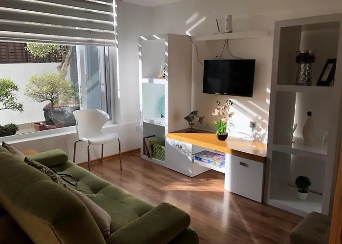 O Comfortable Apartment In The North Center Of Quito disponibiliza comodidades auto-suficientes, tais como cozinha equipada e zona de refeições e uma área de refeições ao ar livre para conveniência dos hóspedes. A estação de comboios 6 de Diciembre Y Belgica está a cerca de 100 metros de distância. O apartamento dispõe de terraço com vista para o átrio.